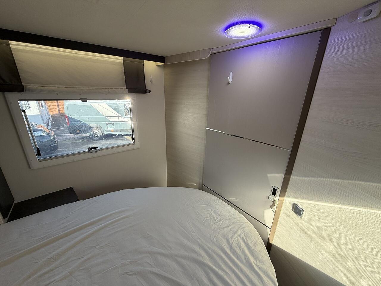 Inside, the layout is one of the most popular Chausson offer. The rear island bed provides a comfortable and practical sleeping area with good access on both sides, along with generous wardrobe and under-bed storage.