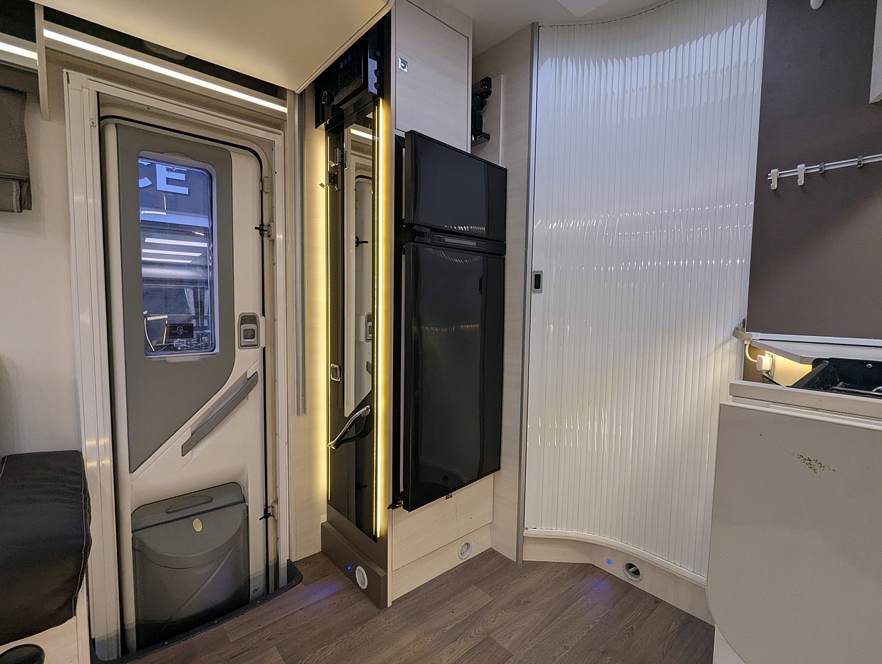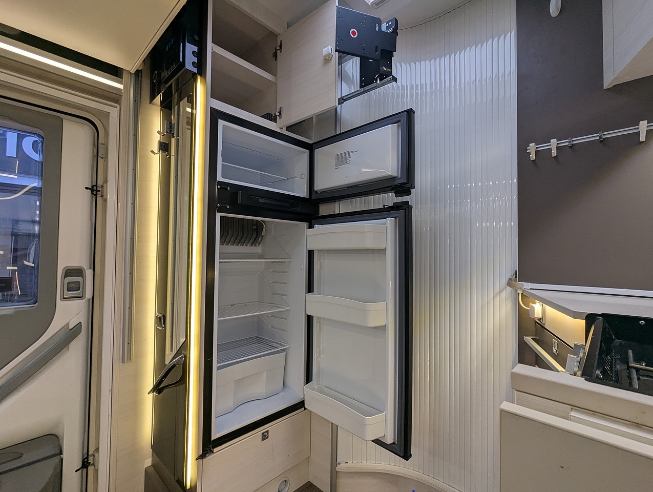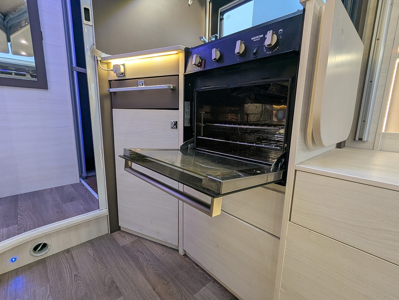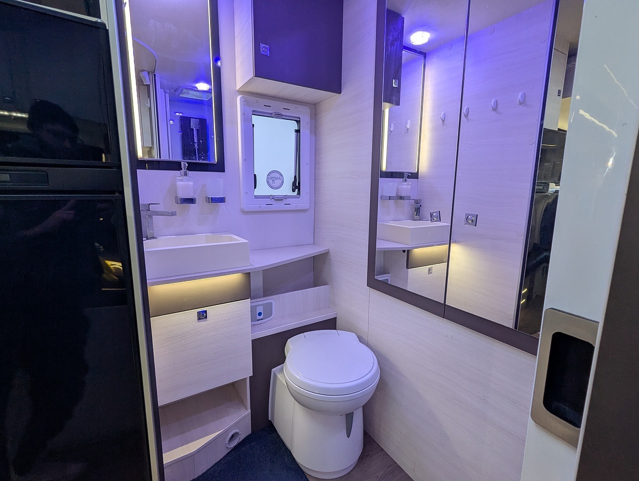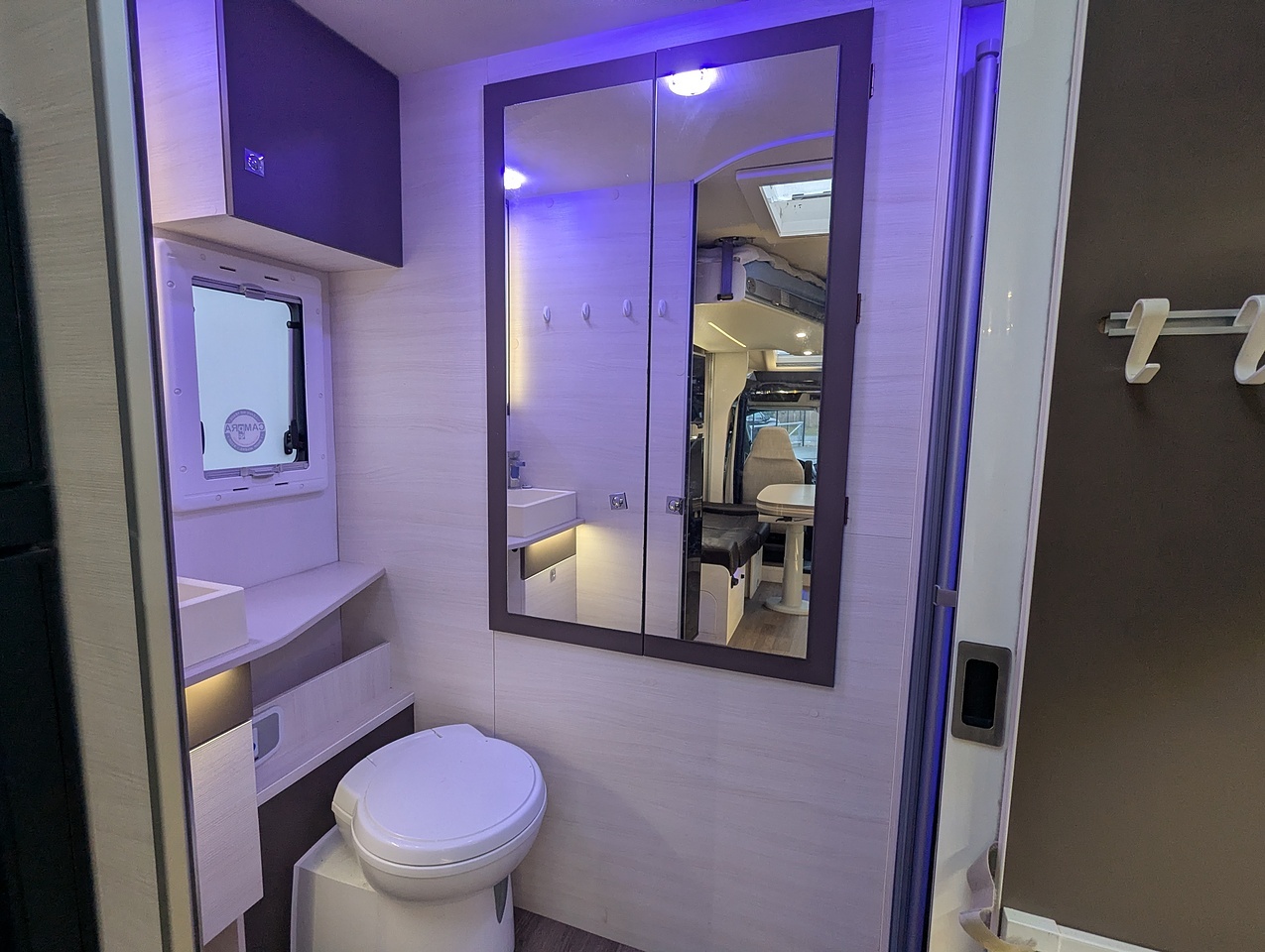 Storage solutions are intelligently integrated throughout the motorhome, ensuring practicality for longer journeys without compromising on interior space.