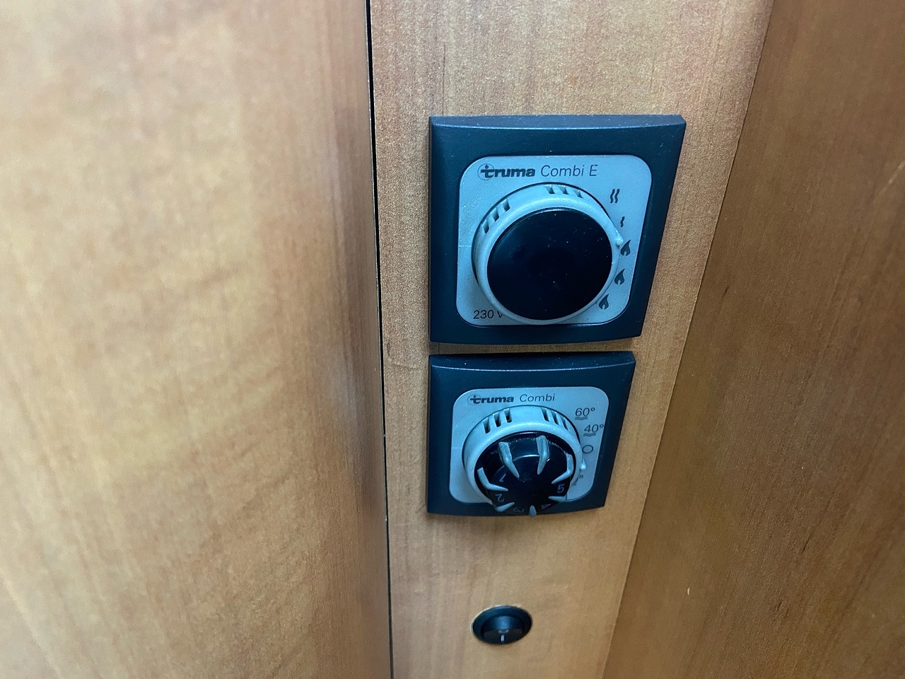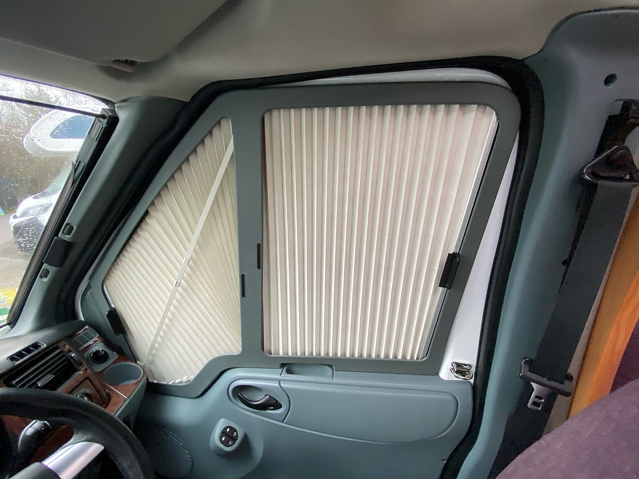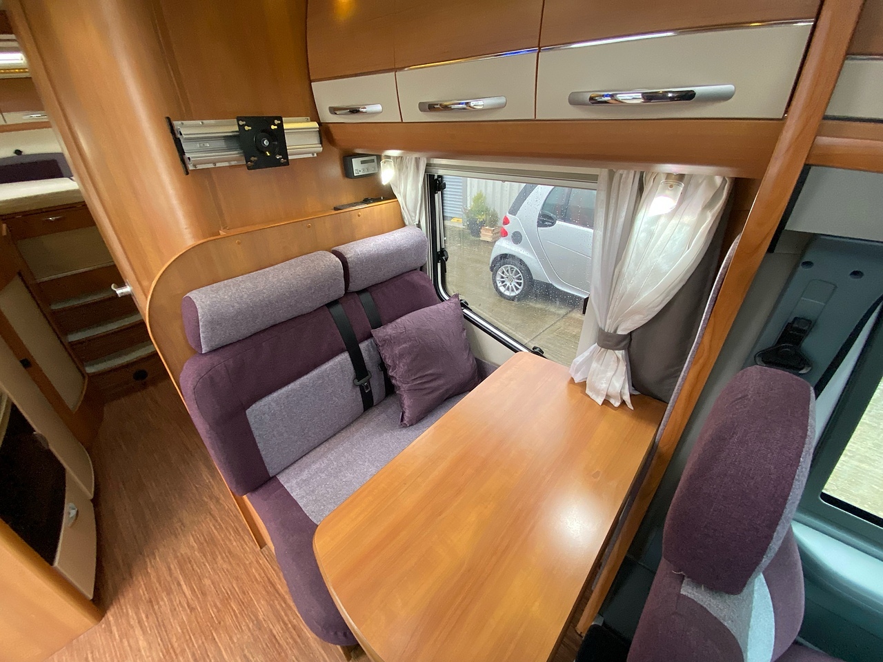 Comfort: Blown-air heating (Truma), swivel cab seats, cab air-con, cruise control, blinds/flyscreens.