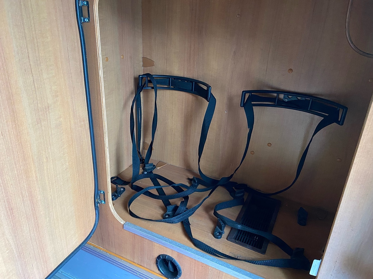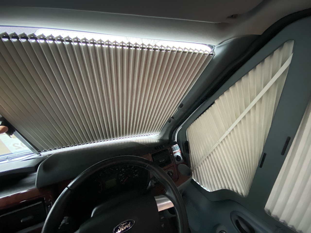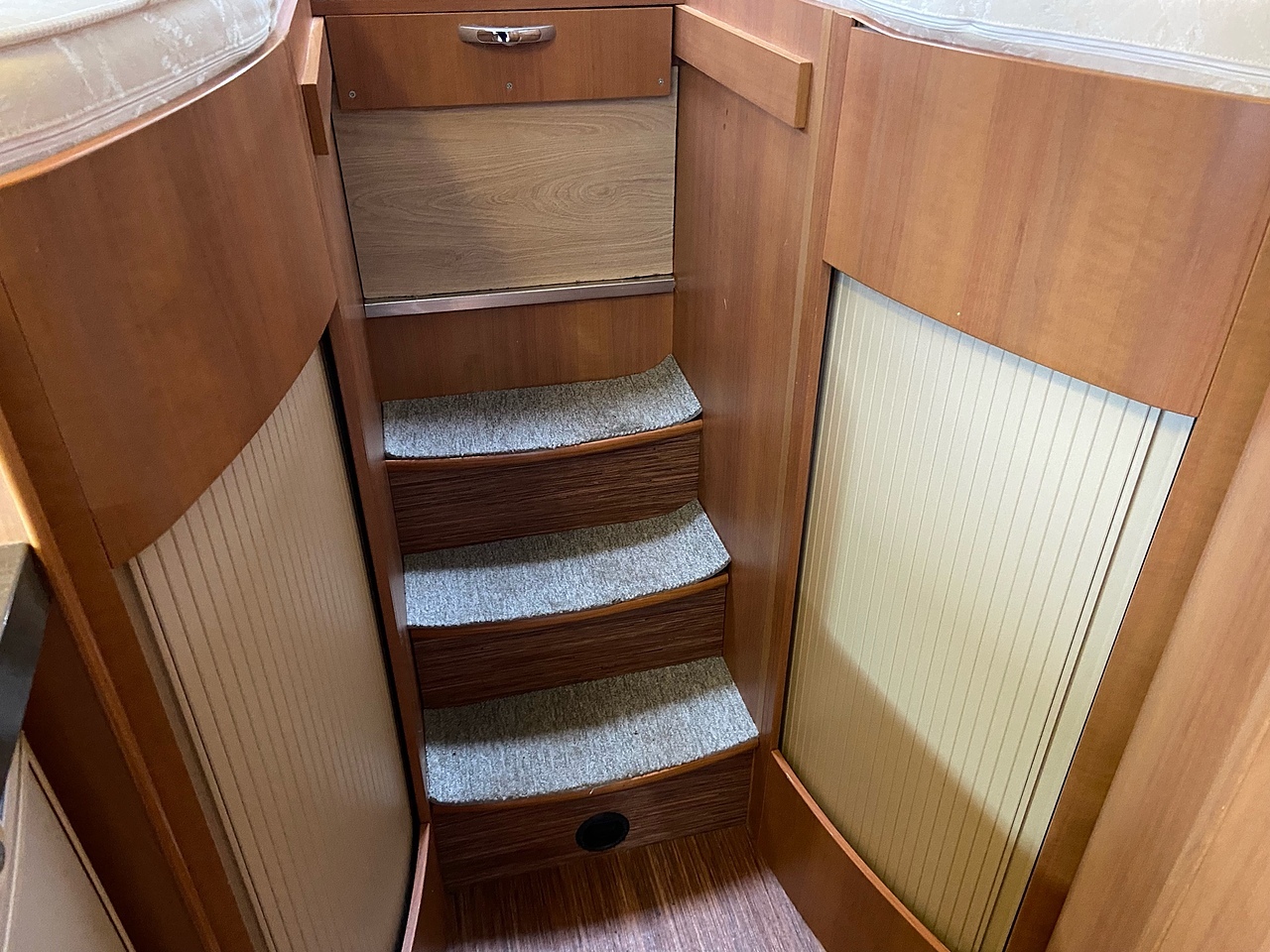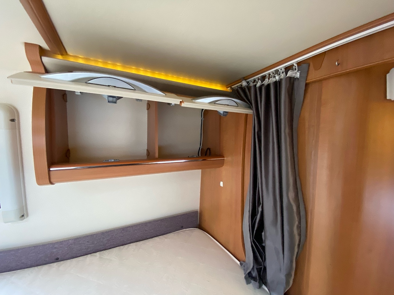 Comfort: Blown-air heating (Truma), swivel cab seats, cab air-con, cruise control, blinds/flyscreens.