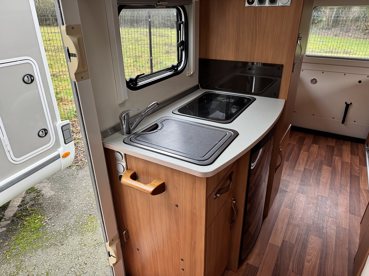 Inside, the layout is smart and well thought out, with a comfortable lounge area, a well-equipped kitchen and a clean, functional washroom.