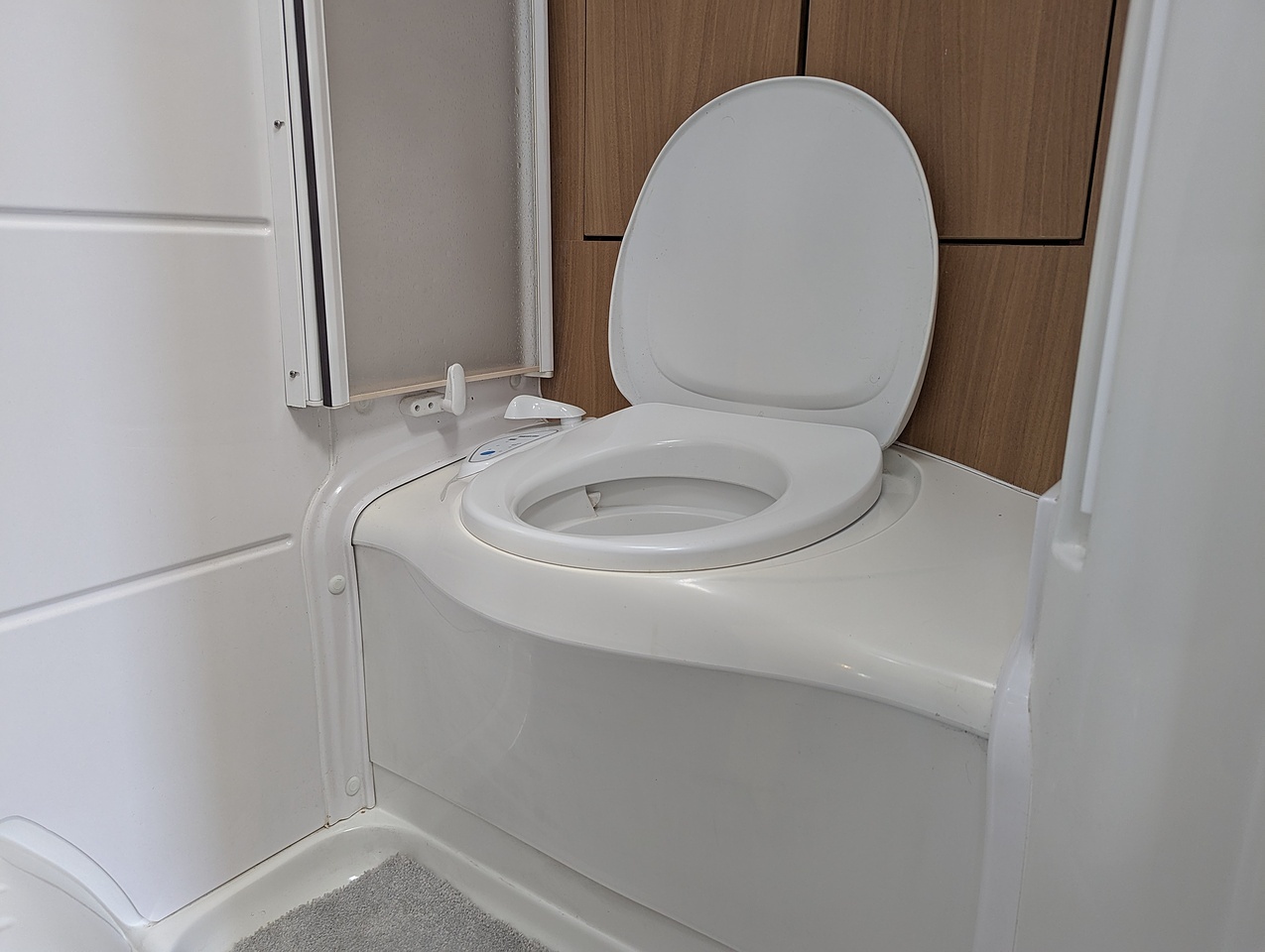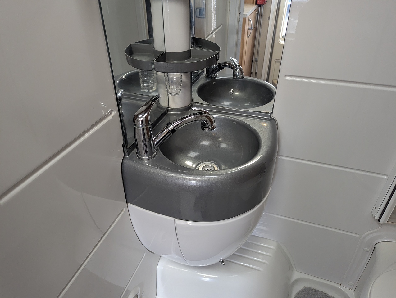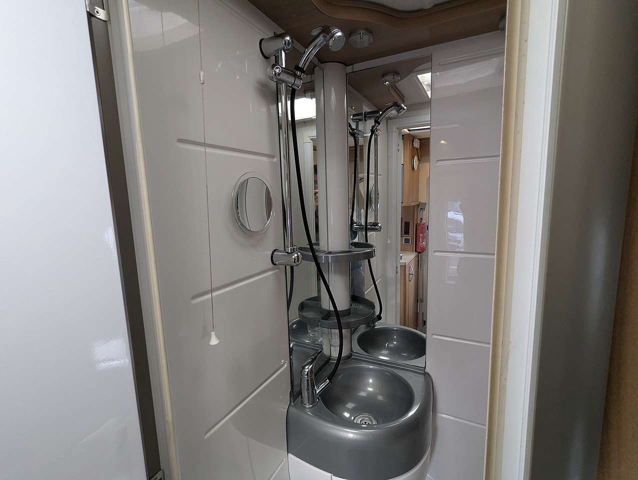 The washroom provides a shower, toilet, and washbasin.