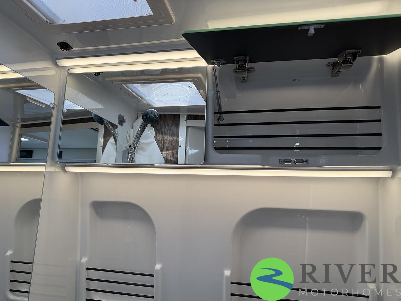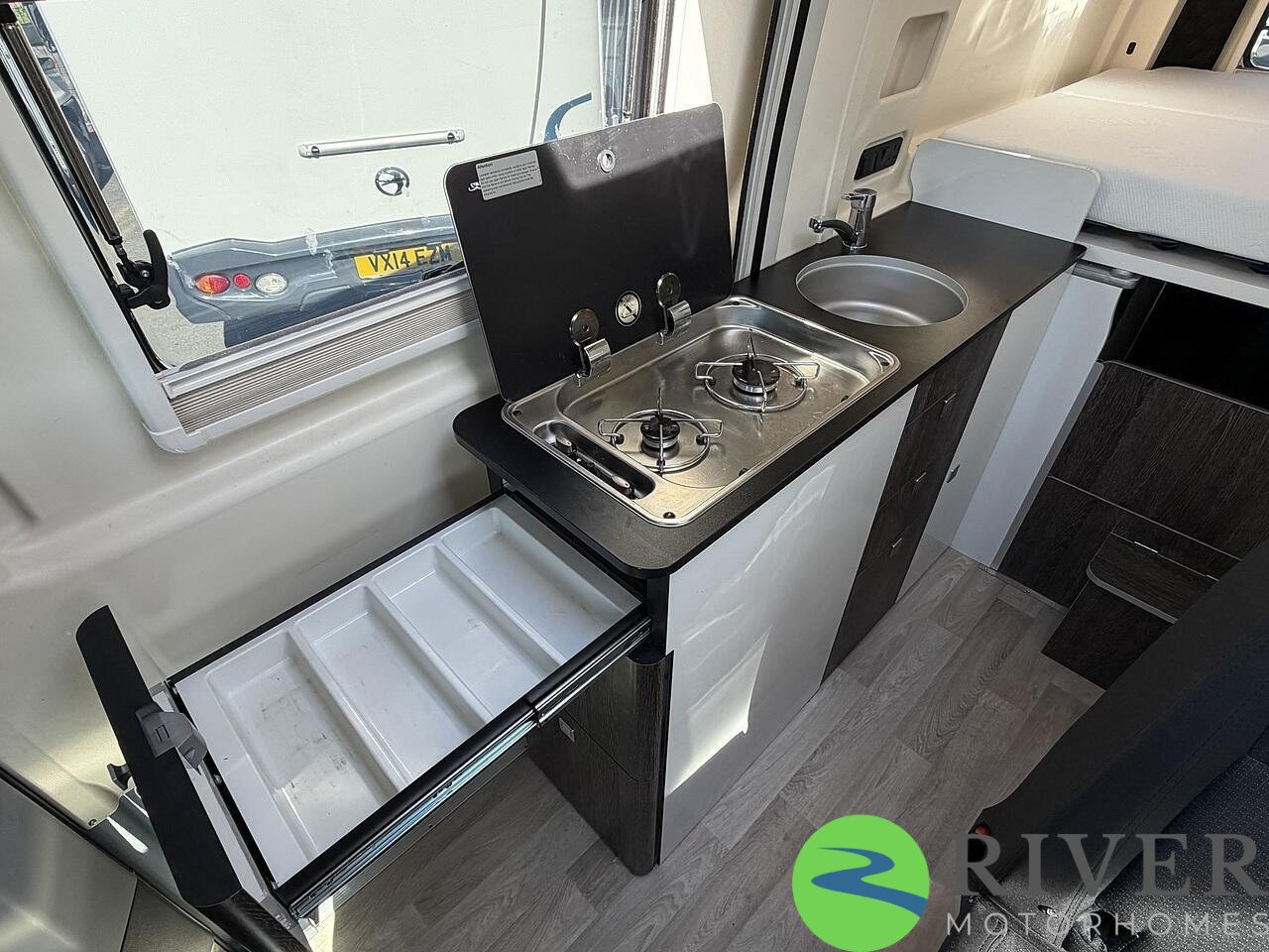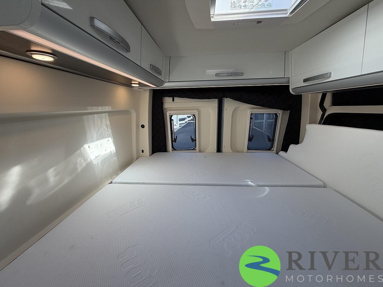 The sleeping area is generous and comfortable, perfect for extended trips, and there’s plenty of smart storage throughout to keep everything organised.