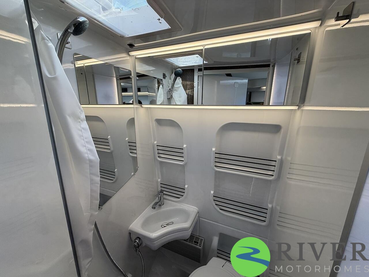 You’ve got a fully equipped kitchen with hob, sink and fridge, plus a washroom with shower and toilet - ideal for staying off-grid without compromising on convenience.
