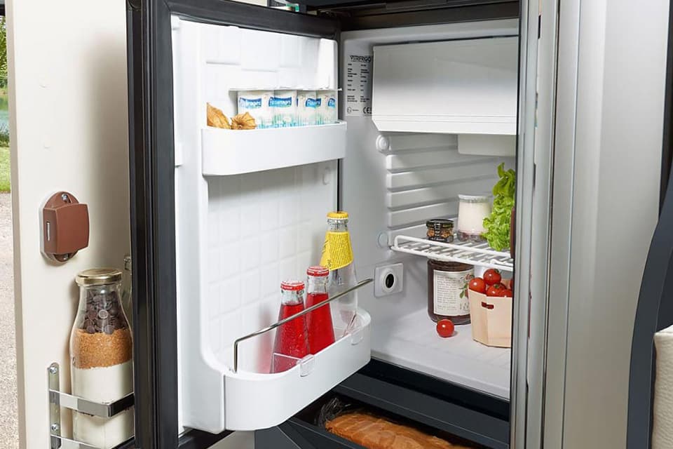 On board, the modern galley is fully functional. A gas stove with two burners sits adjacent to the sink. All are integrated into a large work surface, big enough to prepare tasty dishes for 4 people. Under the worktop, large storage spaces for kitchen utensils face the 51-litre compression fridge, which is positioned high up for easy access.
