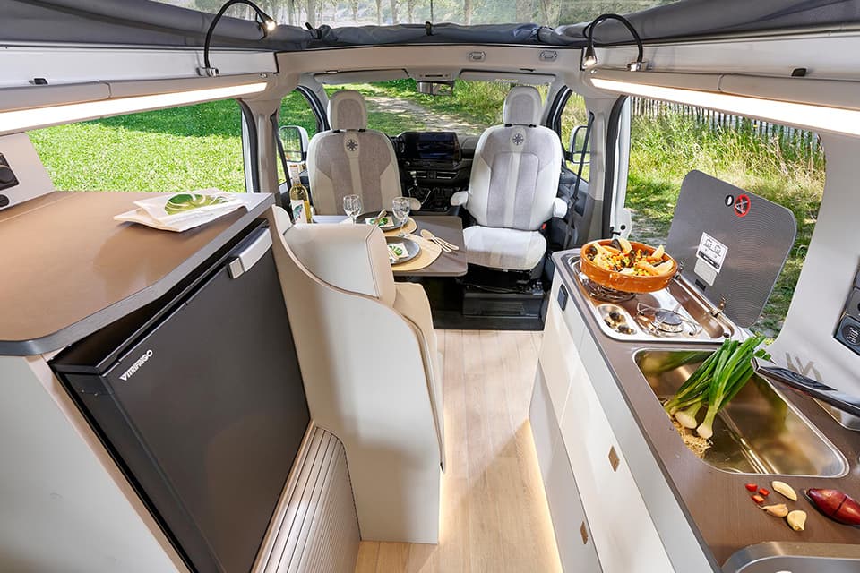 Its all-new interior layout maximises available space and integrates a wide range of comfort features, including a modular and removable transverse bed, XXL rear storage space, clever storage solutions, heating and digital controls.